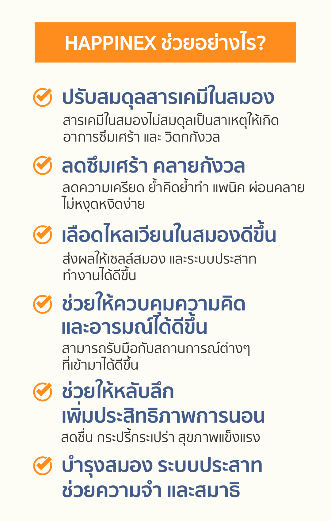 ทำไม Happinex จึงเป็นทางเลือกที่ดีที่สุด เป็นสูตรโดยตรงสำหรับ ซึมเศร้า วิตกกังวล เครียด นอนไม่หลับ