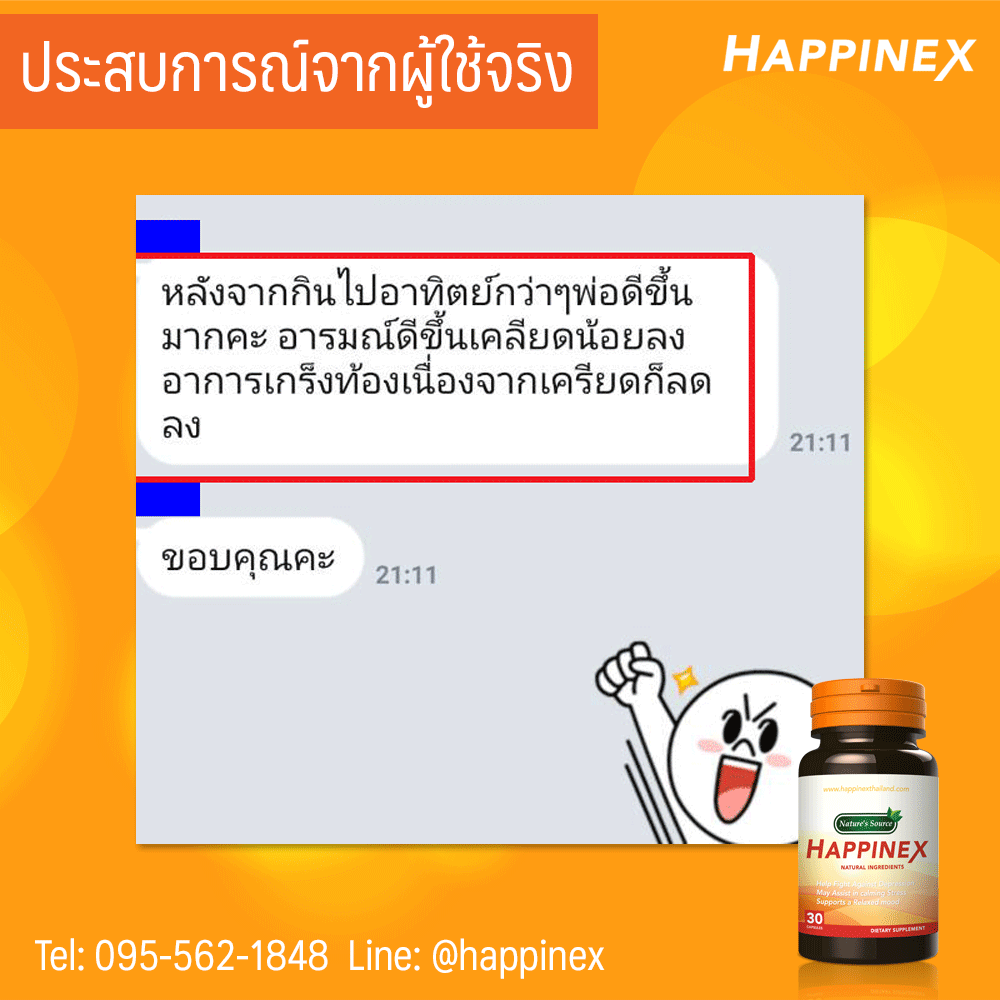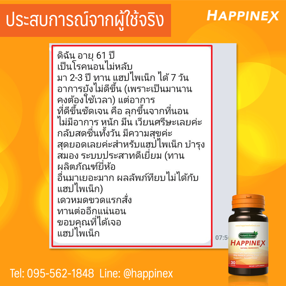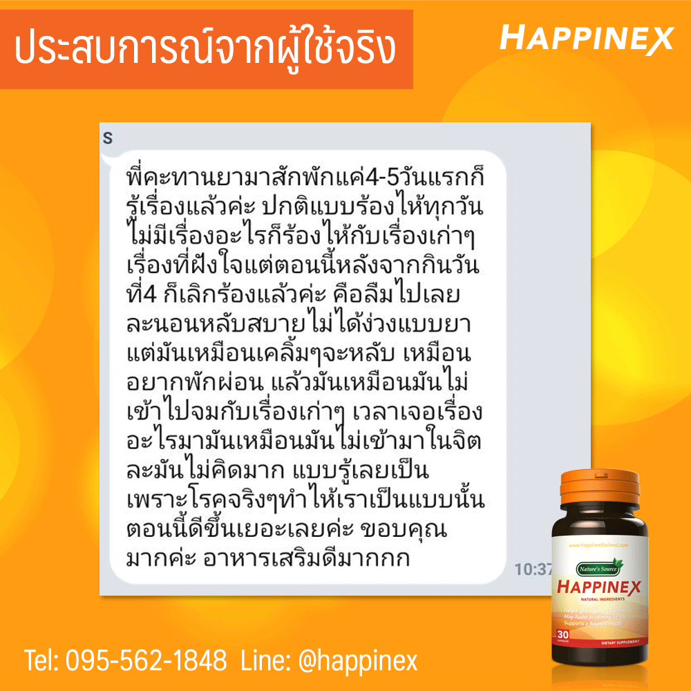"Happinex ทำให้ผมอยากออกไปทำงานอีกครั้ง แถมนอนหลับได้ดีขึ้น หลังจากทานตัวนี้แล้วดีขึ้นจริงๆครับ"
