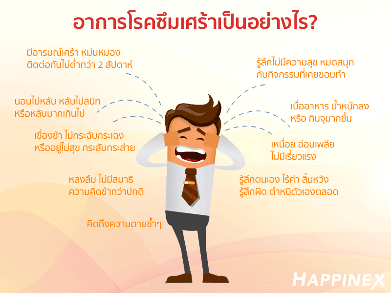 หดหู่ ไม่มีความสุข หงุดหงิดง่าย ไม่อยากทำอะไร หลงลืม ไม่มีสมาธิ อ่อนเพลีย